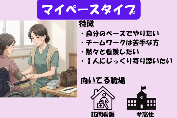 - マイペースタイプ|自分のペースで患者さんに寄り添いたい人向け|訪問看護・サ高住