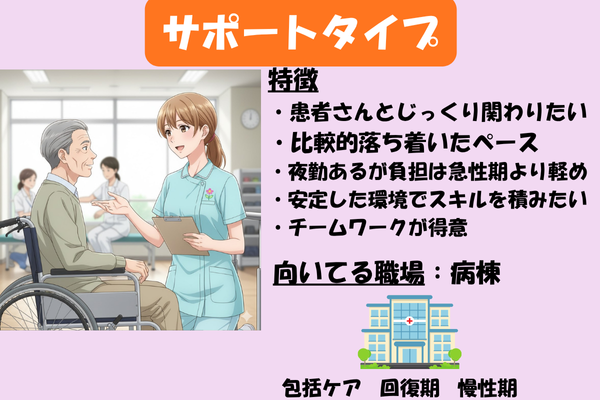 - サポートタイプ|じっくり関わりたい人にぴったり|病棟(回復期・慢性期)